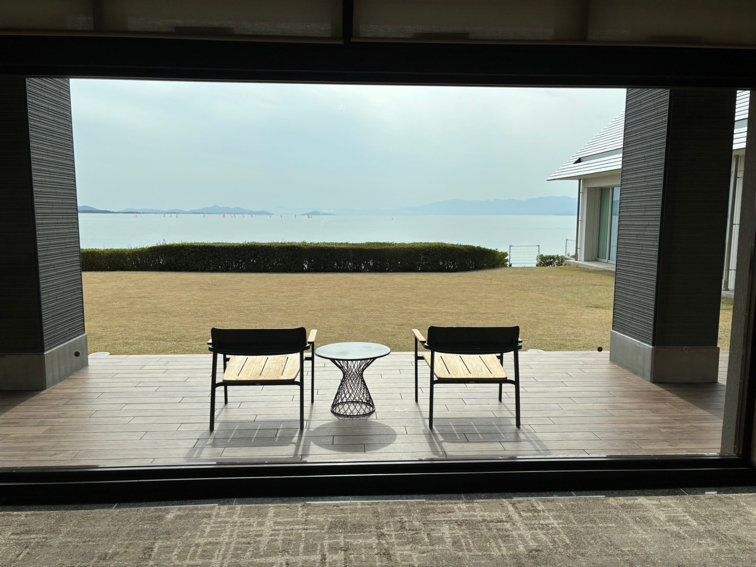 バルコニーのソファに座り、琵琶湖が一望できる眺めは最高です